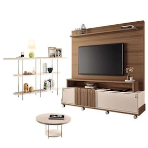 Estante Home Theater Bold Off White Castanho e Aparador Infinity e Mesa de Centro sky Off White HB Móveis