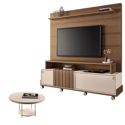 Estante Home Theater Bold Off White Castanho e Mesa de Centro sky Off White – HB Móveis