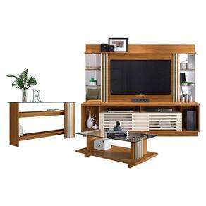 Estante Home Theater com Aparador e Mesa de Centro Frizz Gold Naturale Off White – Madetec