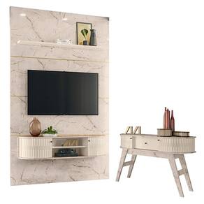 Estante Home Theater com Bancada Suspensa Monte Carlo com Aparador Estoril Calacata Off White – Madetec