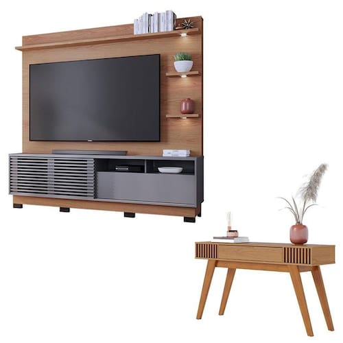 Estante Home Theater Campeche Com Pés Freijó Cinza Acetinado e Aparador Riviera Freijó – Colibri
