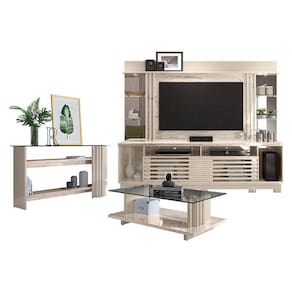 Estante Home Theater com Pés e Aparador com Mesa de Centro Frizz Gold Calacata Off White – Madetec