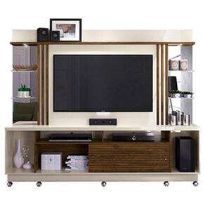 Estante Home Theater com Rodízios e Aparador Frizz Gold Off White Savana – Madetec