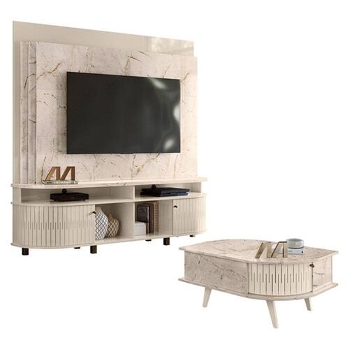 Estante Home Theater Daytona com Mesa de Centro Indianápolis Calacata Off White – Madetec