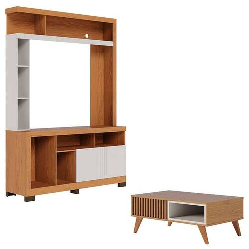 Estante Home Theater Elba Freijó Off White Matte e Mesa de Centro Jeri Freijó Off White - Colibri
