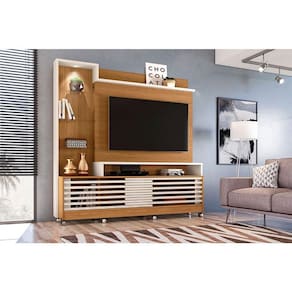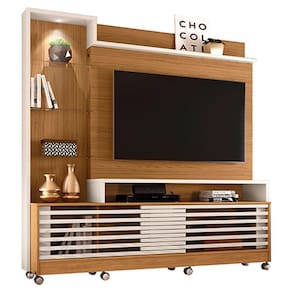 Estante Home Theater Frizz Prime com Rodízios Naturale Off White – Madetec
