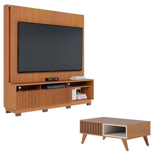 Estante Home Theater Jordão Com Pés Freijó e Mesa de Centro Jeri Freijó Off White - Colibri