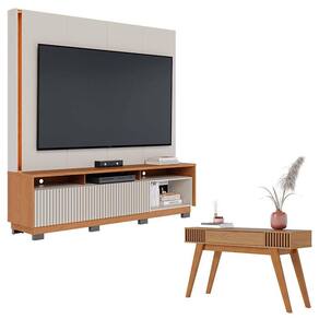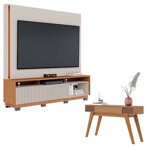 Estante Home Theater Jordão Com Pés Off White Freijó e Aparador Riviera Freijó – Colibri