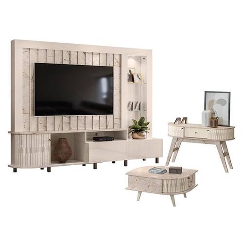 Estante Home Theater Le Mans com Aparador Estoril e Mesa de Centro Indianápolis Calacata Off White – Madetec