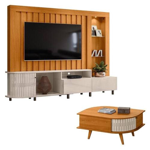 Estante Home Theater Le Mans com Mesa de Centro Indianápolis Cinamomo Off White – Madetec