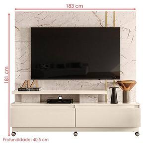 Estante Home Theater com Bancada New Apolo com Rodízios Calacata Off White Madetec