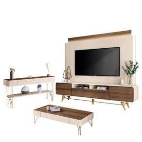 Estante Home Theater Nobre e Aparador Vivant e Mesa de Centro Cadenza Off White Castanho HB Móveis
