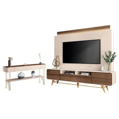 Estante Home Theater Nobre e Aparador Vivant Off White Castanho – HB Móveis