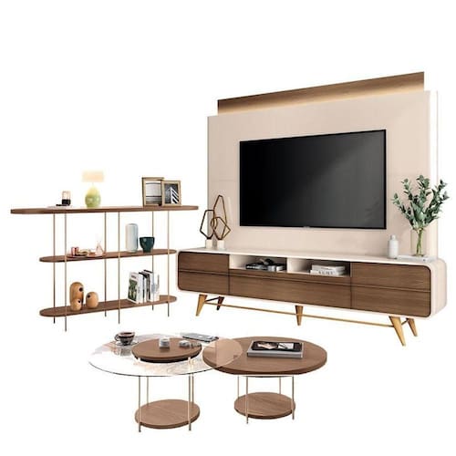 Estante Home Theater Nobre Off White Castanho HB Móveis