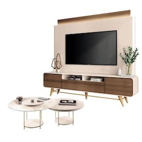 Estante Home Theater Nobre Off White Castanho e Kit Mesa de centro Sky Off White– HB Móveis