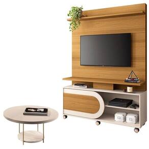 Estante Home Theater Òrbis Castanho Off White e Mesa de Centro sky Off White- HB Móveis