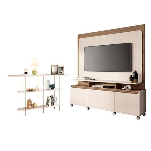 Estante Home Theater Quantum Off White Castanho e Aparador Infinity Off White – HB Móveis