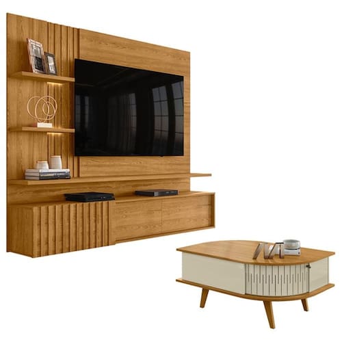 Estante Home Theater Suspenso Atena com Mesa de Centro Indianápolis Cumaru Opala – Madetec