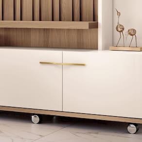 - Puxadores metálicos em tom dourado