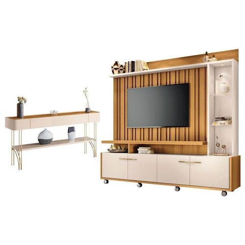 Estante Home Theater Titan e Aparador Vivant Cinamomo Off White - HB Móveis