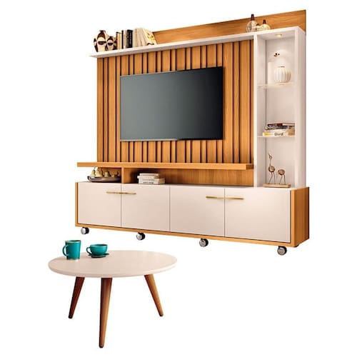 Estante Home Theater Titan e Mesa de Centro Sorelle Cinamomo Off White – HB Móveis
