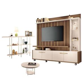 Estante Home Theater Titan Off White Castanho e Aparador Infinity e Mesa de Centro sky Off White - HB Móveis