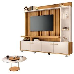 Estante Home Theater Titan Off White Cinamomo e Mesa de Centro sky com Tampo de Vidro Cinamomo - HB Móveis