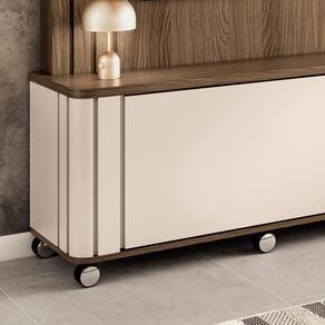 A Estante Home Theater Trinus é perfeita para quem busca unir sofisticação e funcionalidade na sala de estar. Produzida em MDP e MDF com pintura UV, possui tampo e prateleira superior de 25mm que garantem resistência e durabilidade. Seu design moderno conta com linhas ripadas decorativas, cantos arredondados com detalhe ripado e porta deslizante com trilho em alumínio, proporcionando charme e praticidade no dia a dia. Além disso, acompanha rodízios cromados de 50mm que facilitam a movimentação e é ideal para TVs de até 70?.