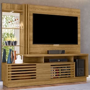 MDPEstante Home Frizz Plus, para transformar sua sala em um espaço moderno e funcional! Estrutura em MDP (base e painel 15/25 mm e tampo 40 mm) com acabamento em pintura UV texturizada. Suporta com segurança TVs de até 60 polegadas, conta com 2 portas de correr sobrepostas com frisos horizontais, nichos abertos, espelho lateral, 3 prateleiras (sendo 2 em vidro 5 mm) e luminária LED embutida. Também possui passa fios central. Este produto chegará em sua casa separado em 4 volumes.