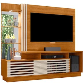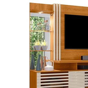 Estante Home Frizz Plus, para transformar sua sala em um espaço moderno e funcional! Estrutura em MDP (base e painel 15/25 mm e tampo 40 mm) com acabamento em pintura UV texturizada. Suporta com segurança TVs de até 60 polegadas, conta com 2 portas de correr sobrepostas com frisos horizontais, nichos abertos, espelho lateral, 3 prateleiras (sendo 2 em vidro 5 mm) e luminária LED embutida. Também possui passa fios central. Este produto chegará em sua casa separado em 4 volumes.