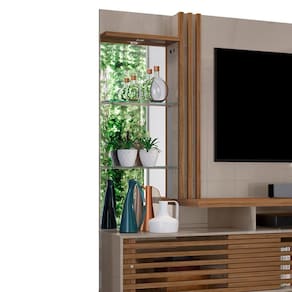 Estante Home Frizz Plus, para transformar sua sala em um espaço moderno e funcional! Estrutura em MDP (base e painel 15/25 mm e tampo 40 mm) com acabamento em pintura UV texturizada. Suporta com segurança TVs de até 60 polegadas, conta com 2 portas de correr sobrepostas com frisos horizontais, nichos abertos, espelho lateral, 3 prateleiras (sendo 2 em vidro 5 mm) e luminária LED embutida. Também possui passa fios central. Este produto chegará em sua casa separado em 4 volumes.