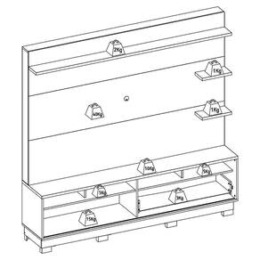 Estante Home Campeche, com design moderno alinhando espaço e personalidade para seu lar. Estrutura em MDF/MDP (12/15/25 mm) com acabamento em pintura UV texturizada. Composto por porta de correr com ripados artesanal (baixo relevo) com abertura por trilho U, gavetão com corrediças telescópicas, nichos decorativos funcionais, prateleiras laterais com Spots de LED já embutidos, passa fios e pés inclusos (montagem opcional 5 cm). Suporta TVs de até 70 polegadas com segurança. Este produto será entregue em 3 volumes.