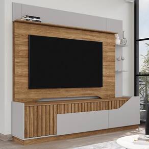 Estante Home Dallas, design funcional com detalhes que valorizam a sua sala. Estrutura em MDP/MDF com acabamento em pintura UV texturizada. Possui portas com dobradiças metálicas e detalhe usinado, sistema de fecho clique magnético, ripado decorativo chanfrado (em MDF), gaveta com corrediças telescópicas, prateleiras laterais, passa fios e rodapés integrados. Suporta TVs de até 75 polegadas com segurança. Este produto será entregue em 2 volumes.