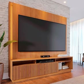 Estante Home Jordão, combina design contemporâneo e funcionalidade para transformar sua sala. Estrutura em MDF/ MDP (25, 15 e 12 mm), conta com acabamento em pintura UV texturizada. Possui 2 portas de correr com detalhes ripados, lateral do painel usinada com LED embutido, passa fios e pés inclusos (montagem opcional). Suporta TVs de até 75 polegadas com segurança. Este produto será entregue em 3 volumes.