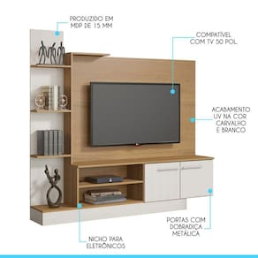 Estante Home Tv Cairo Completo 50p Mdp Carvalho Menu Móveis Carvalho Quer deixar sua sala mais completa e elegante? Entao invista agora no Home TV Cairo. Com um design atual e super funcional, ele vai transformar a decoracao do seu ambiente. Possui nichos para eletronicos, prateleira para decoracao e duas portas para manter tudo sempre organizado. Produzido com materiais de excelente qualidade, garantindo a sua resistencia e mantendo sua beleza e funcionalidade por muito mais tempo. O melhor em moveis no design atual aliando conforto, qualidade e otimos precos, so na Menu Moveis! Caracteristicas Referencia: Material: MDP de 15 mm Acabamento: Pintura UV na cor Castanho e Branco Portas com Dobradica Metalica Puxadores Alca em ABS na cor Cromado Compativel com TV ate 50 Polegadas