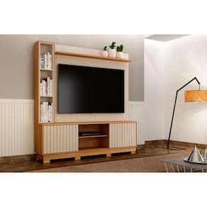 A Estante Home ValdeMóveis Montenegro Para Tvs Até 65" é a fusão perfeita de estilo e funcionalidade. Seu design moderno, com acabamento premium, 02 portas ripadas destaca-se, enquanto os compartimentos oferecem amplo espaço de armazenamento.