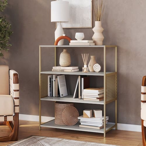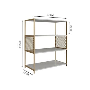 A estante média P1024 da Placa & Ponto possui um nicho com telas espandidas de metal nas laterais, estrutura metálica e prateleiras em MDP. Este produto além de poder colocar seus pertences e decorações, serve como decoração do seu ambiente. Otimize seu espaço com muito estilo e funcionalidade! Produto Montado: Sim Acabamento da Prateleira: Finish Foil Acabamento dos Pés: Pintura Altura dos Pés: 4 cm Altura Máxima dos Pés: 4.0000 Ambiente Principal: Sala de Estar codigo_ean: 7900288196873 Complexidade da Montagem: Média: pode ser montado por mais de uma pessoa e/ou necessite de maior conhecimento para montagem Cor: Arena / Dourado Cor do Produto: Arena / Dourado Escala de Brilho: Fosco Escala de Brilho da Prateleira: Fosco Espessura do Espelho: 0 mm Formato do Espelho: Oval Informações Complementares: distribuidos entre as prateleiras Itens Inclusos: 1 Estante, Kit Ferragens e Manual de Montagem Linha ou Coleção: P1024 Manual de Montagem e Instalação: https://product-hub-prd.madeiramadeira.com.br/427357622/documents/c35e2168-a357-4ffc-8d4f-7ac711746e803075303628917527472723822.pdf Marca: Placa e Ponto Material da Prateleira: MDP Material dos Pés: Metal Material Principal: MDP Montagem Flex: Não Necessita Montagem: Sim Origem do Produto: Nacional Peso: 16 kg Peso Máximo por Prateleira: 5 kg Possui Acabamento na Parte de Trás: Sim Possui Espelho: Não Possui iluminação: Não Possui Pés: 04 Possui Portas: Não Possui Prateleiras: Sim Possui Rodízio: Não Possui Vidro: Não Quantidade de Nichos: 03 Recomendações de Uso, Manutenção e Limpeza: Para a Limpeza do Móvel Utilizar Uma Flanela Seca. Sapatas Niveladoras: Não Sistema de Montagem: Parafusos Suporta Até (kg): 40 kg Tipo de Fixação do Espelho: Silicone