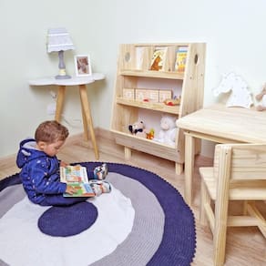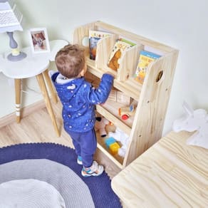 Possui prateleira para brinquedos, decoração e separação para livrinhos!