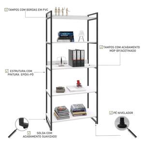 Estante Kuadra 80x40x187cm C/05 Prateleiras Branco Chess / Branco Chess / Sobre o ProdutoEstante Kuadra 80X40X187cm C/05 Prateleiras Branco Chess / Est.PretaDescrição do Produto:A Estante Kuadra KUES85 é um produto prático e versátil, que pode ser utilizado em diversos ambientes, como quarto e escritório, na sala, cozinha ou seu depó Linha Kuadra tem seu design com inspiração no estilo industrial, que remete muito a decoração usada nos Lofts das grandes metrópoles nos anos 60 e 70. Harmonizando o metal e os tons de madeira, foram projetados móveis versáteis e com estilo, que podem compor ambientes íveis cheios de personalidade, perfeitos para você decorar sua casa ou seu trabalho, tendo um resultado que caminha do estilo rústico ao Inclusos:1 EstanteDimensões dos Produtos:Estante Kuadra 80X40X187cm C/05 Prateleiras Branco Chess / 80 x 40 x 187 cmInformações Logísticas (Comp. X Prof. X Alt.) 187 x 41 x 10 cm - Peso: 23,902 KgPeso Total: 23,902 KgObservações:Não acompanha acessórios decorativos. Imagens meramente ilustrativas.Informações Técnicas / Características:- Cor do Produto: Branco Chess / - Marca: Compace- Modelo: KUES85- Linha: Kuadra- Material: Mdp- Material da Estrutura / Pés: Aço- Acabamento: BP Acetinado- Escala de Brilho: Fosco- Fita de Borda: Pvc- Possui Portas: Não - Possui Prateleiras: 5- Peso Máximo por Prateleira: 10 kg- Possui Pés: 2- Pés Niveladores: Sim - Acabamento Estrutura: Epóxi-Pó Texturizado - Suporta Até (kg): 50 kg- Comprimento: 80cm- Profundidade: 40cm- Altura: 187cm - Peso Lí.: 22,8Kg- Recomendações de Uso, Manutenção e Limpeza: Para a limpeza, utilize flanela seca ou pano macio levemente umedecido em água. Utilize um pano seco em seguida. Evite com produtos químicos (solventes, thinner, acetona, etc) e não utilize nenhum tipo de esponja de aço.- Necessita de Montagem: Sim / Acompanha Manual de Montagem- Complexidade da Montagem: Média: pode ser montado por mais de uma pessoa e/ou necessite de maior conhecimento para montagem.- Garantia: 6 meses Material: Mdp | Acabamento: BP Acetinado | Escala de Brilho: Fosco | Fita de Borda: Pvc | Material da Estrutura: Aço | Acabamento da Estrutura: Epóxi-Pó Texturizado | Numero do Fabricante: | Produto: Estante | Cômodo indicado: Escritórios | Cor: Multicolorido | Tonalidade: Multicolorido | Quantidade de itens: 1 | Principais Características do Produto 0: Aço | do modelo: KUES85 | Certificação de teste externa: Não aplicável | Baterias são necessárias?: false | Palavras-chave de Pesquisa: Não Aplicável | Principais Características do Produto 1: MDP | da peça: KUES85 | de caixas: 1 | Principais Características do Produto 2: Pvc | Componentes incluídos: Manual de montagem e kit acessórios | Exige montagem: true | Fabricante: Compace | Peso do item: unit=kilograms; | Dimensões do item P x L x A: depth#value=40;width#value=80;depth#unit=centimeters;width#unit=centimeters;height#value=187;height#unit=centimeters Cor: Branco Chess /