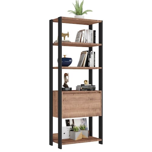 estilo industrial! Inclusive, conta com 4 prateleiras formando nichos para colocar seus objetos e 1 porta basculante! Me diz, essa