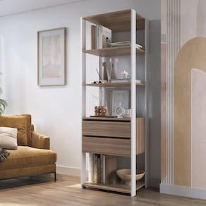 É a escolha ideal para quem busca uma solução prática e moderna para organizar e decorar seus ambientes. Produzida em MDP de 15mm com um acabamento fosco, ela combina com a durabilidade e com um visual sofisticado, sendo uma excelente opção para quem valoriza um design moderno e funcional. Seu design prático conta com 02 gavetas espaçosas para armazenamento de itens menores e 04 prateleiras amplas. Suporta até 7 kg por prateleira, proporcionando um espaço seguro e organizado para livros, objetos decorativos, plantas, documentos, entre outros. Seu design versátil permite que ela seja utilizada em diversos cômodos, como sala de estar, quarto, escritório ou área de estudo, adaptando-se perfeitamente a espaços pequenos e valorizando o ambiente com estilo. Este móvel chegará em sua casa separado em 01 Volume.