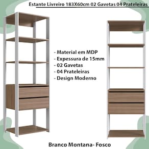 • Modelo: Estante Livreiro 183X60cm 02 Gavetas PRODDY