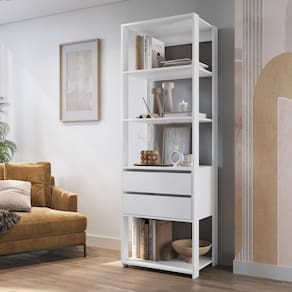 É a escolha ideal para quem busca uma solução prática e moderna para organizar e decorar seus ambientes. Produzida em MDP de 15mm com um acabamento fosco, ela combina com a durabilidade e com um visual sofisticado, sendo uma excelente opção para quem valoriza um design moderno e funcional. Seu design prático conta com 02 gavetas espaçosas para armazenamento de itens menores e 04 prateleiras amplas. Suporta até 7 kg por prateleira, proporcionando um espaço seguro e organizado para livros, objetos decorativos, plantas, documentos, entre outros. Seu design versátil permite que ela seja utilizada em diversos cômodos, como sala de estar, quarto, escritório ou área de estudo, adaptando-se perfeitamente a espaços pequenos e valorizando o ambiente com estilo. Este móvel chegará em sua casa separado em 01 Volume.