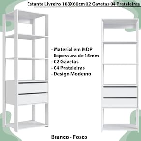 Estante Livreiro 183X60cm 02 Gavetas Branco PRODDY
