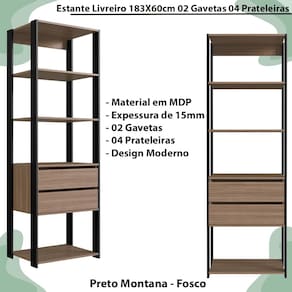 • Modelo: Estante Livreiro 183X60cm 02 Gavetas PRODDY