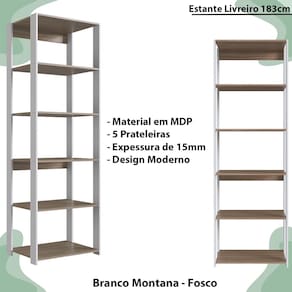 Feito em MDP de 15mm com um sofisticado acabamento fosco. Além de ser prático, foi pensado para pessoas que buscam mais do que um simples móvel, mas sim uma peça que traz organização e modernidade ao dia a dia. Com 05 prateleiras espaçosas, cada uma delas suportando até 07kg. É ideal para ser usada em diversos cômodos e perfeita para espaços menores. Este móvel chegará em sua casa separado em 01 Volume.