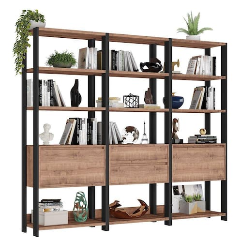 estilo industrial! Inclusive, conta com 12 prateleiras formando nichos para colocar seus objetos, 2 gavetas de corrediças telescópicas e 2 portas basculantes! Me diz, essa