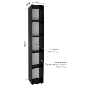 Estante Livreiro 5 Nichos Liverpool Preto - Estante Multiuso com 5 Nichos