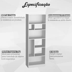 Estante Livreiro 8 Nichos B38, é a peça que faltava para completar seu escritório ou home office com estilo e praticidade. Estrutura produzida em MDP de 15mm, contando com acabamento FF (Fosco), garantindo durabilidade e estabilidade ao produto. Composta por 8 nichos com amplo espaço para armazenar diversos itens. Suportando até 5kg cada nicho. Com um design clean e funcional, ela é perfeita para quem valoriza a organização e a qualidade no mobiliário. Este móvel chegará na sua casa separado em 1 volume.