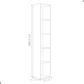 Estante ideal para guardar livros e objetos de decoração. Possui 4 prateleiras formando 5 nichos permitindo organizar o espaço interno de acordo com as necessidade
